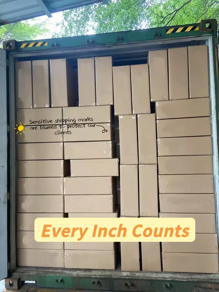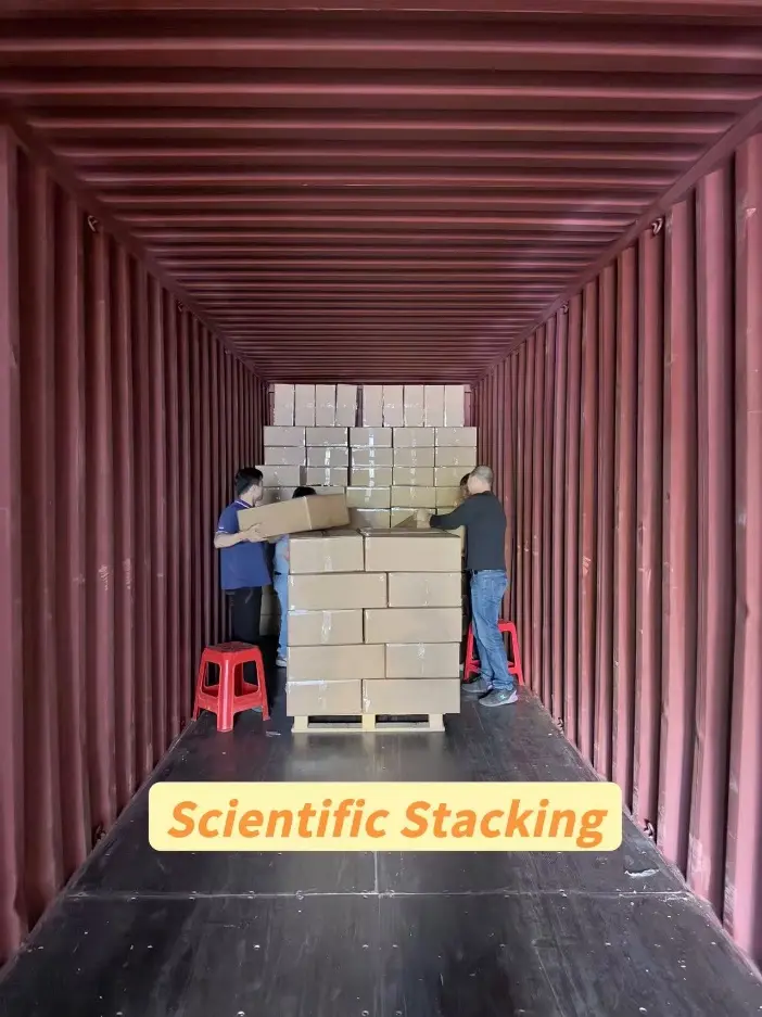 कन्टेनर लोडिङ गणनाको सन्दर्भमा, हाम्रो बल पूर्ण कन्टेनर लोडिङ योजना डिजाइन र परीक्षण गर्दैछ। हामी यस कन्टेनरको कार्टन मात्रा गणना गर्न सबै कारकहरू, जस्तै कन्टेनरको आकार र प्रकार, कार्टन साइज, र प्लेसमेन्ट विधिलाई विचार गर्नेछौं। यो प्रमाणित भएको छ कि कन्टेनर लोडिङको हाम्रो अनुमान एकदम सही छ। हामी हाम्रा कर्मचारीहरूलाई कति पङ्क्तिहरू र स्तम्भहरू लोड गर्ने, सही कन्टेनर लोडिङ अनुक्रम, र सामानहरू सुरक्षित गर्न वैज्ञानिक प्लेसमेन्ट र स्ट्याकिङ विधिहरू व्यवस्थित गर्न मार्गदर्शन गर्न कन्टेनर लोडिङ लेआउटलाई पनि सावधानीपूर्वक योजना बनाउँछौं। सामानहरू क्रिम पेपर बक्सहरू भएकाले, उच्च गुणस्तरको स्किनकेयर प्याकेजिङ बक्सहरूमा क्रिज वा झुर्रीहरू हुन अनुमति छैन। त्यसैले हामी गुणस्तर कायम राख्न स्ट्याक्ड तहहरूमा कार्टनहरू व्यवस्थित गर्न थप ध्यान दिनेछौं।